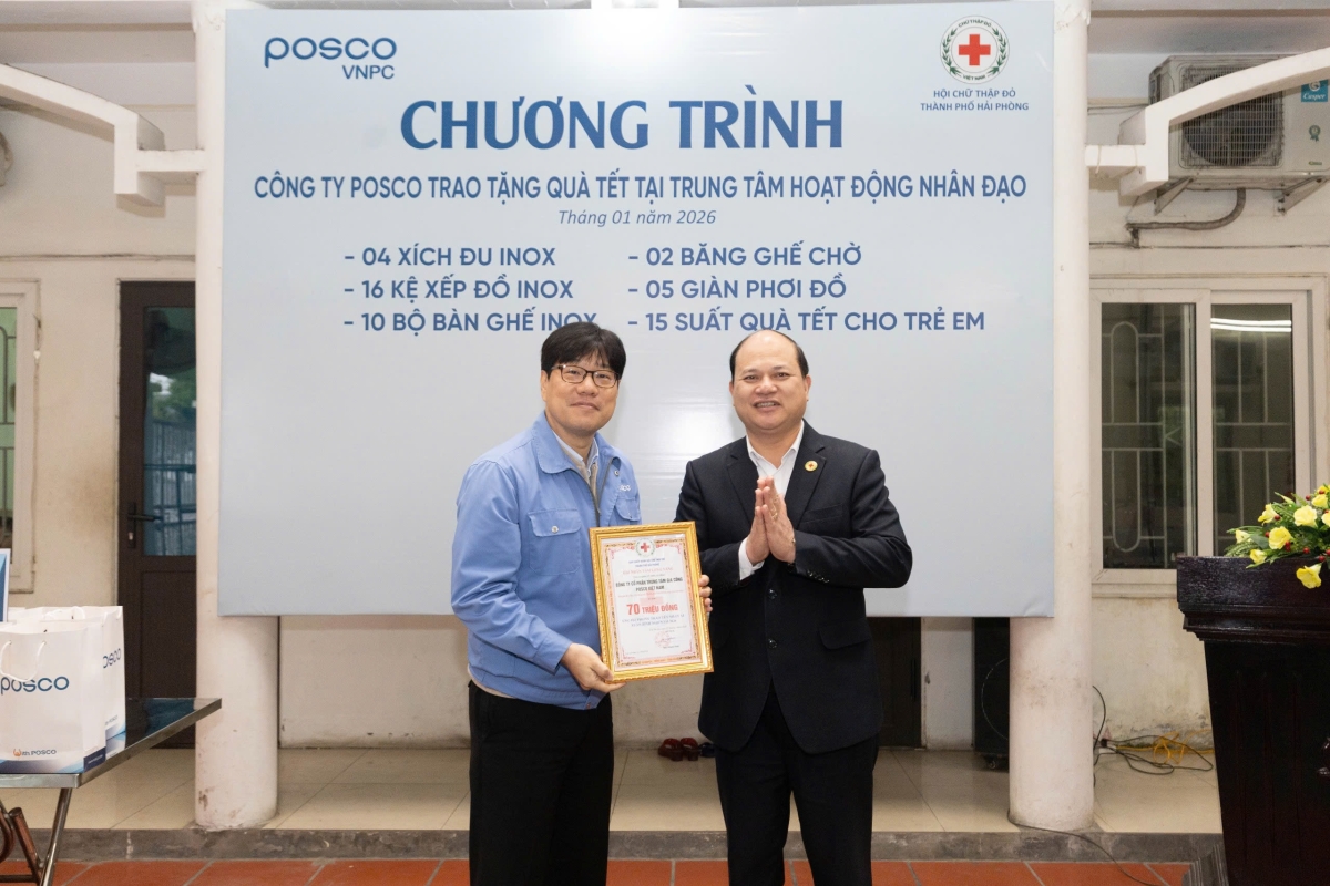 Sáng ngày 22/01, nhân dịp Xuân Bính Ngọ năm 2026, Công ty Cổ phần Trung tâm Gia công POSCO Việt Nam đã tổ chức đoàn đến thăm và trao quà Tết cho các cháu bị bỏ rơi đang được chăm sóc, nuôi dưỡng tại Trung tâm Hoạt động nhân đạo (đơn vị trực thuộc Hội Chữ thập đỏ thành phố Hải Phòng).