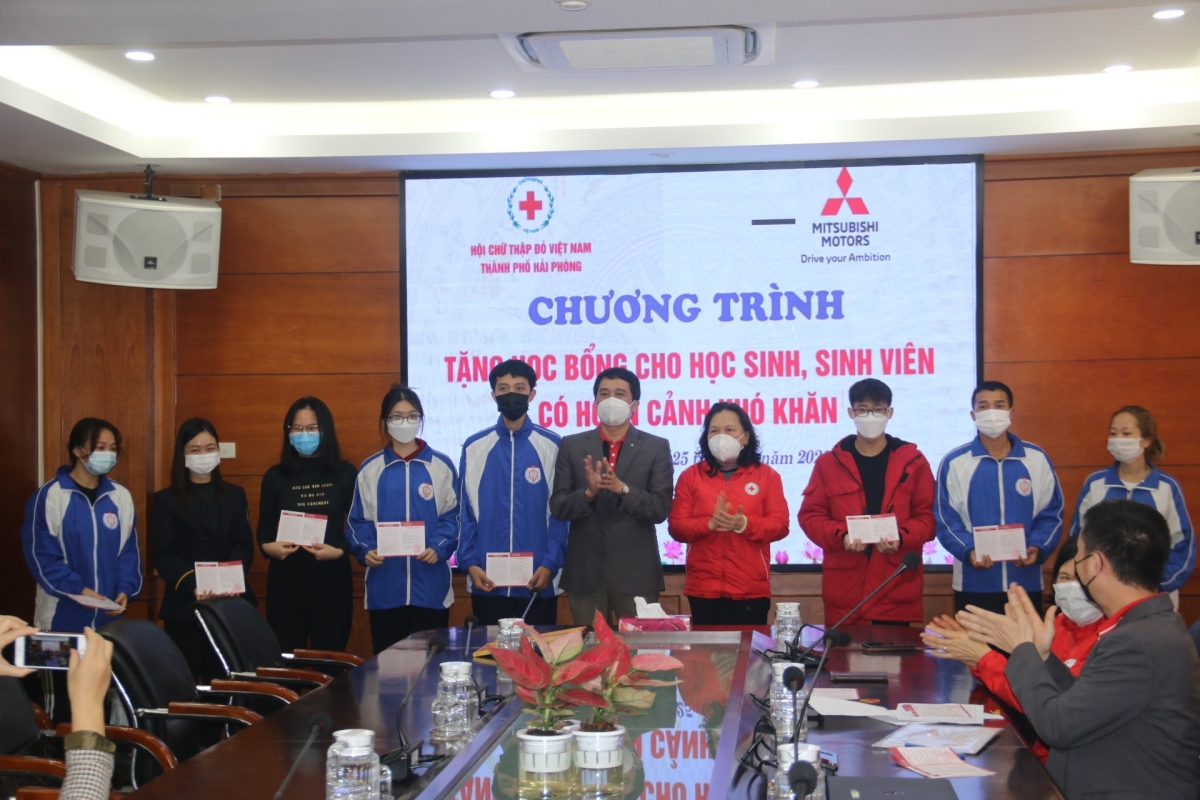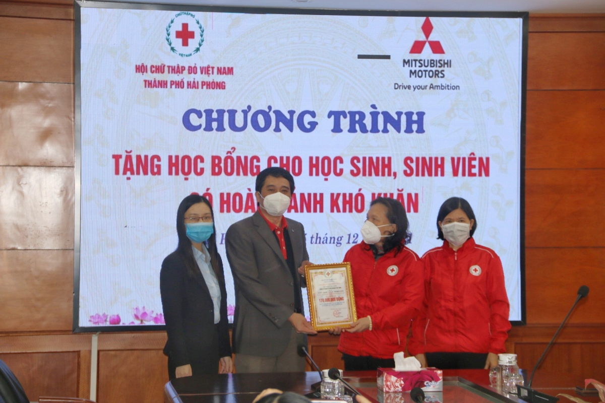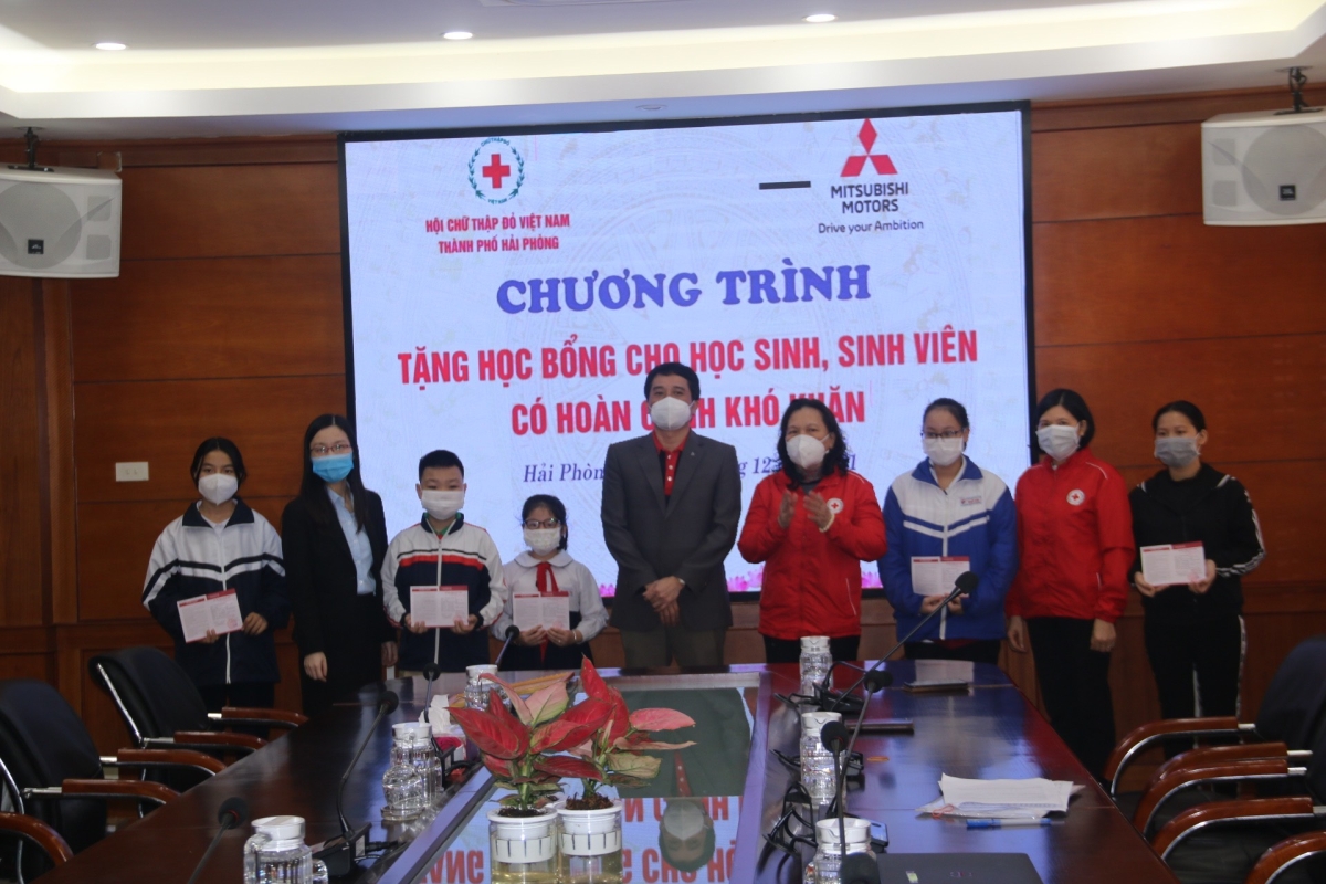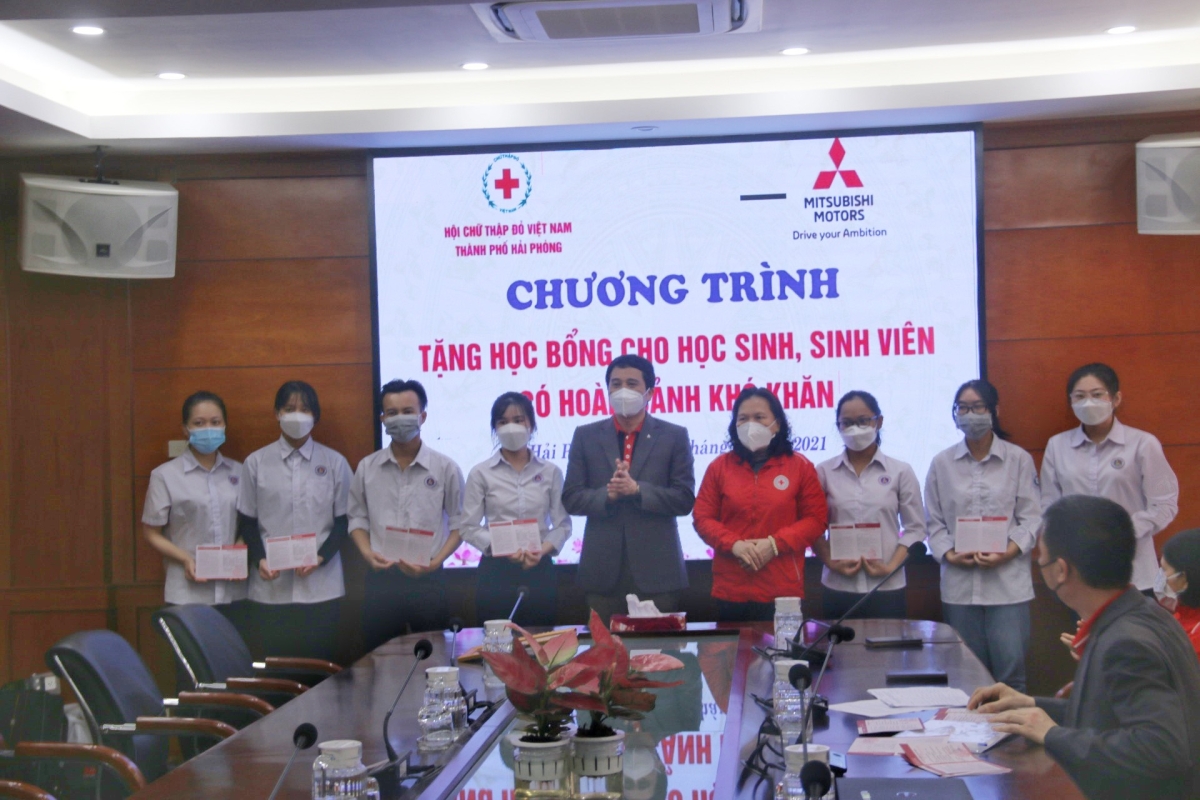 Triển khai chương trình phối hợp giữa Hội Chữ thập đỏ Việt Nam và Công ty TNHH Ô tô Mitsubishi Việt Nam, sáng ngày 25/12, tại Ngân hàng Nông nghiệp &PTNT chi nhánh Hải Phòng, Hội Chữ thập đỏ thành phố tổ chức chương trình trao tặng học bổng cho các học sinh, sinh viên nghèo vượt khó do Công ty TNHH Ô tô Mitsubishi Việt Nam tài trợ. Dự chương trình có bà Cao Thị Phượng – Chủ tịch Hội Chữ thập đỏ thành phố, bà Phạm Thị Hòa – Phó Chủ tịch Hội Chữ thập đỏ thành phố, ông Đào Công Quyết – Tổng Trưởng phòng Mitsubishi Motors Việt Nam Chi nhánh Hà Nội, bà Đặng Thị Minh Hằng – Giám đốc điều hành Nhà phân phối Mitsubishi Hải Phòng; Thường trực Hội Chữ thập đỏ các quận huyện, đại diện các Trường Đại học và các học sinh, sinh viên được nhận học bổng.