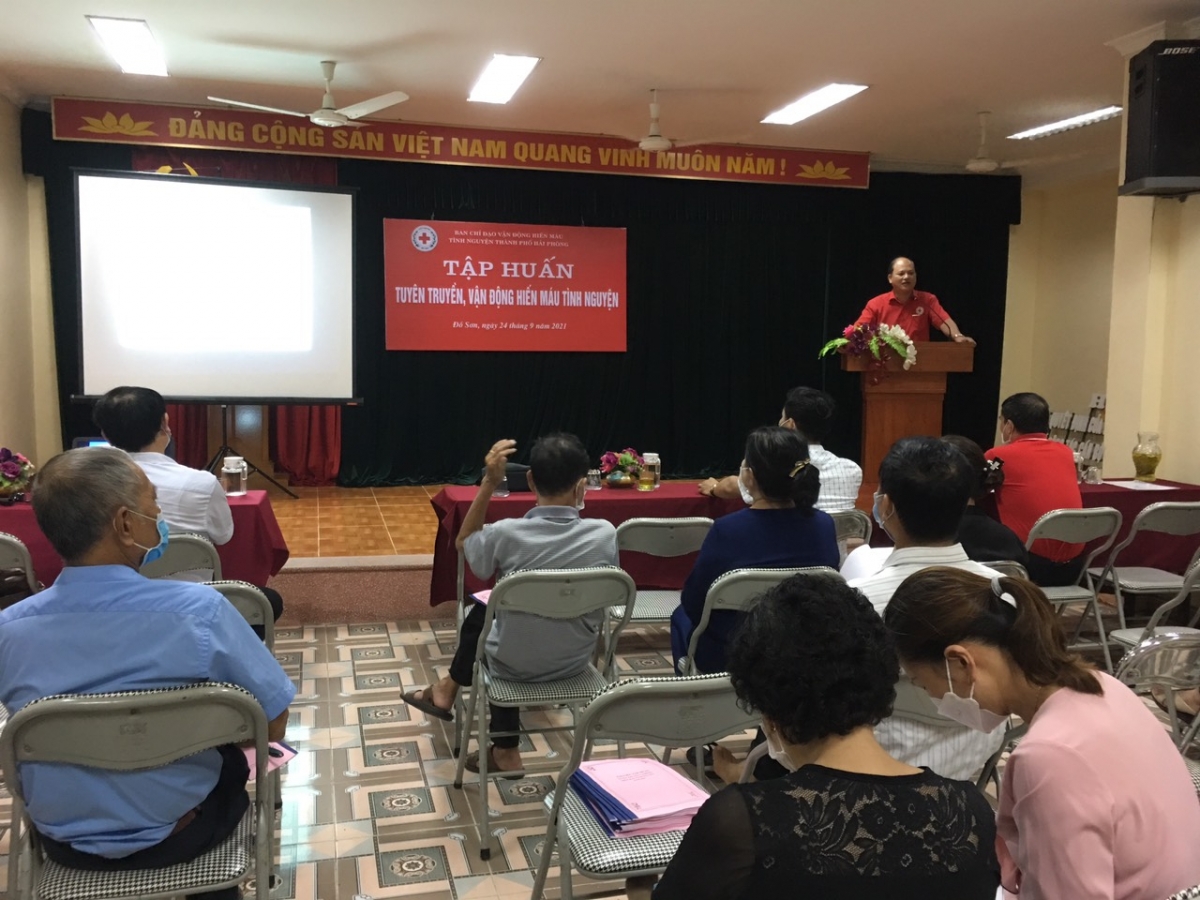 Thực hiện Chương trình công tác của Ban chỉ đạo vận động hiến máu tình nguyện thành phố, trong 2 ngày 24/9 và 28/9, Hội Chữ thập đỏ thành phố (cơ quan thường trực Ban chỉ đạo vận động hiến máu tình nguyện thành phố) tổ chức tập huấn tuyên truyền, hiến máu tình nguyện cho đội ngũ cán bộ cơ sở là Chủ tịch Hội Chữ thập đỏ các phường, Bí thư, Tổ trưởng Tổ dân phố của quận Đồ Sơn và Dương Kinh. Dự và tham gia giảng viên lớp tập huấn có ông Bùi Mạnh Phúc – Chánh Văn phòng Ban chỉ đạo HMTN, Phó Chủ tịch Hội CTĐ thành phố, ông Hoàng Văn Phóng – Giám đốc Trung tâm Huyết học – Truyền máu thành phố.
