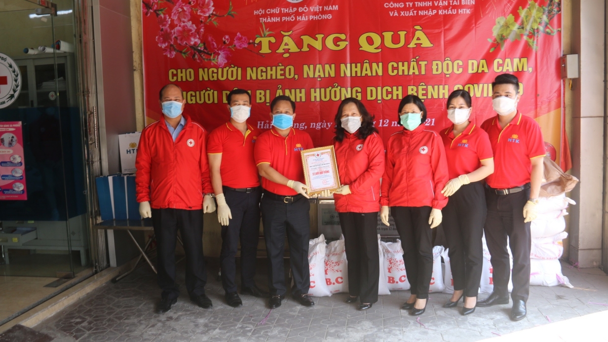 Triển khai kế hoạch “Tết vì người nghèo và nạn nhân chất độc da cam năm 2022” của Trung ương Hội Chữ thập đỏ Việt Nam. Chiều ngày 23/12, Hội Chữ thập đỏ thành phố Hải Phòng cùng nhà tài trợ Công ty TNHH Vận tải biển và xuất nhập khẩu HTK tổ chức chương trình tặng quà cho người nghèo, nạn nhân chất độc da cam, người dân bị ảnh hưởng bởi dịch Covid-19. Tới dự chương trình có bà Cao Thị Phượng – Chủ tịch Hội CTĐ thành phố, ông Tạ Tiến Luật – Phó Giám đốc công ty TNHH Vận tải biển và xuất nhập khẩu HTK, đại diện nhà tài trợ, cùng các ông bà Thường trực Hội CTĐ thành phố Hải Phòng, TT Hội CTĐ quận Lê Chân, Hồng Bàng, Dương Kinh, Hải An.