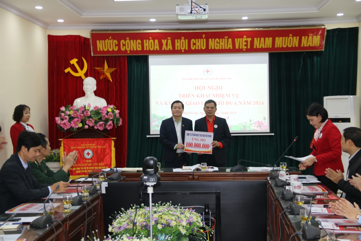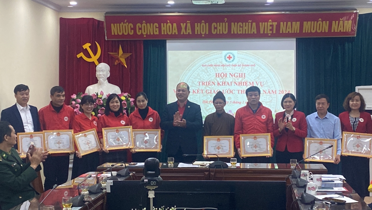 Hưởng ứng phong trào “Tết Nhân ái” năm 2024, tại Hội nghị, đại diện các tổ chức, doanh nghiệp đã ủng hộ tổng số tiền lên tới gần 2 tỷ đồng. Nhân dịp này, Trung ương Hội Chữ thập đỏ Việt Nam trao tặng Cờ thi đơn vị xuất sắc tiêu biểu cho Hội Chữ thập đỏ quận Hồng Bàng; Hội Chữ thập đỏ thành phố trao tặng Giấy khen cho 5 tập thể và 8 cá nhân có thành tích xuất sắc trong hoạt động nhân đạo của thành phố. Đại diện Hội Chữ thập đỏ các quận, huyện thông qua nội dung và ký kết giao ước thi đua năm 2024.