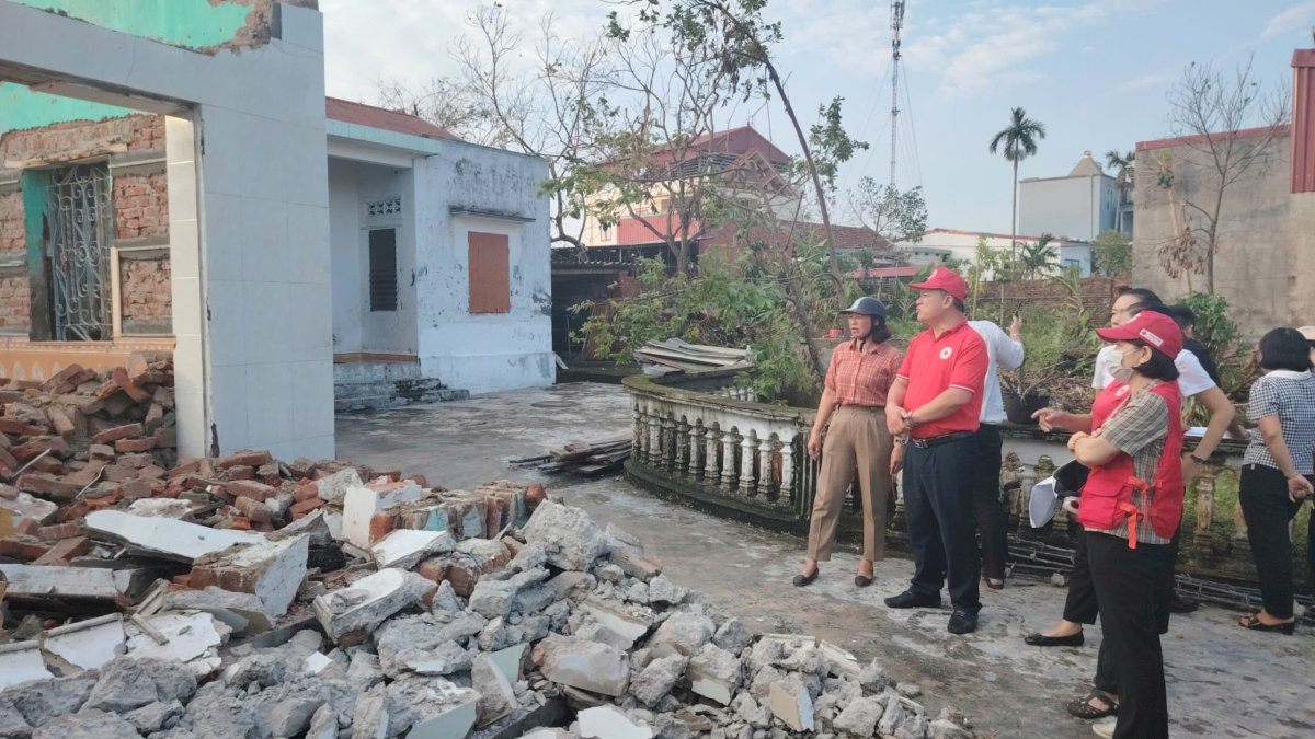 Tiếp tục các hoạt động hỗ trợ người dân chịu ảnh hưởng bởi bão số 3, chiều ngày 16/9 Hội Chữ thập đỏ thành phố cùng Quỹ Thiện Tâm thuộc Tập đoàn Vingroup tổ chức đoàn khảo sát, đánh giá thực tế các hộ gia đình hoàn cảnh khó khăn có người thiệt mạng, nhà bị sập đổ, tốc mái do tác động của bởi cơn bão số 3.